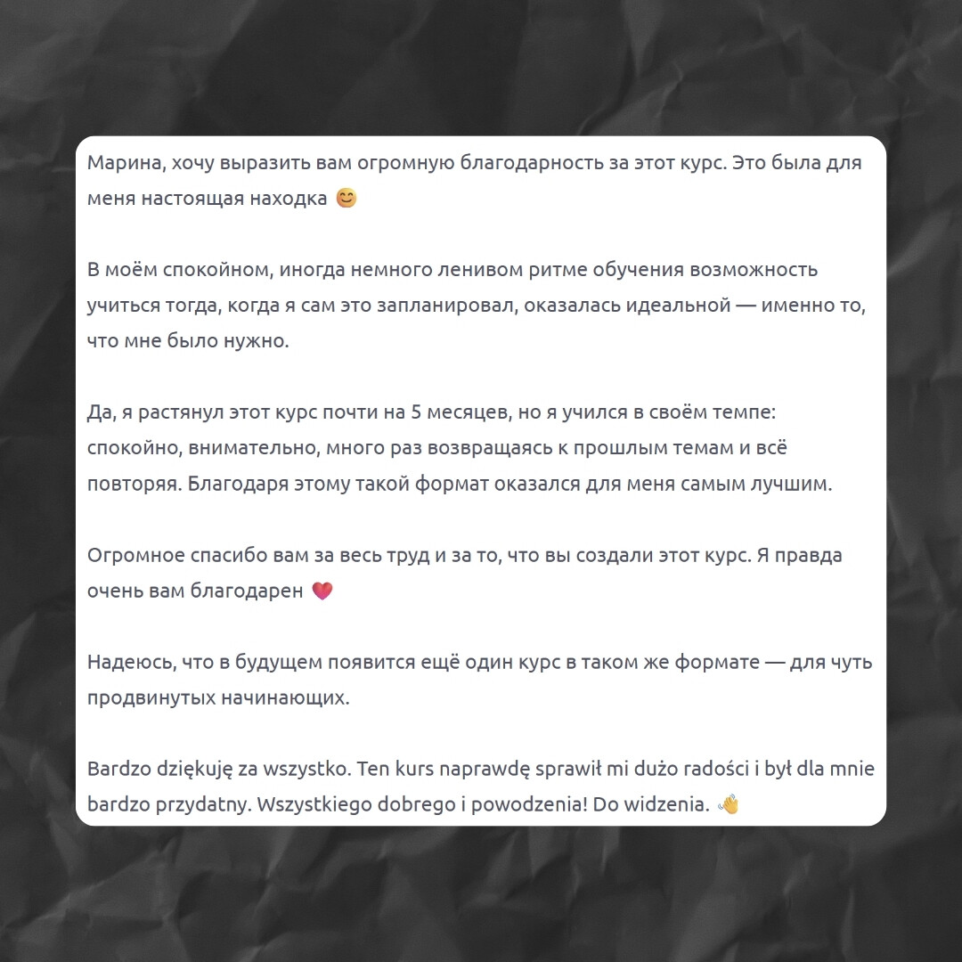 Я создала курс польского для начинающих - чтобы ты заговорил по-польски уверенно, естественно и без страха ошибок 💬